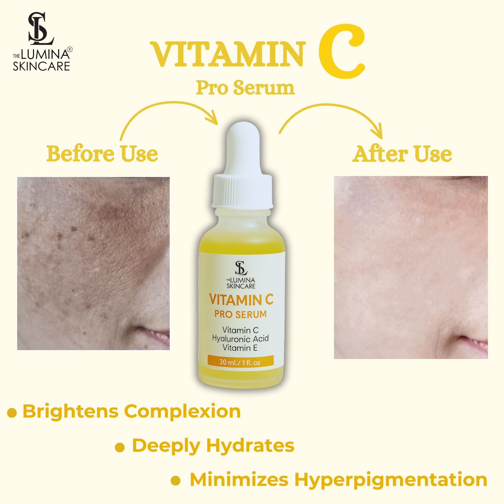 The Vitamin C Pro Serum is expertly formulated to brighten your complexion. With powerful antioxidants, it fights free radicals that cause dullness. Because Vitamin C is known for its brightening properties, regular use helps reveal a more luminous, youthful appearance. This serum penetrates deeply, making your skin look refreshed and vibrant.